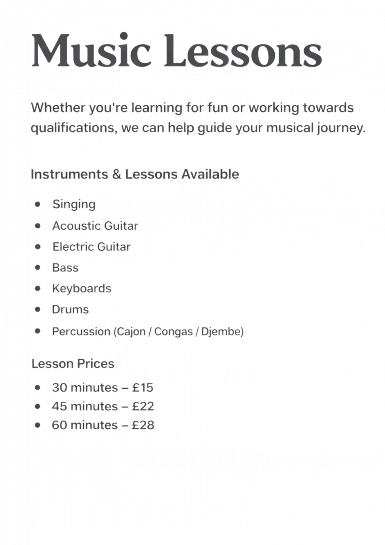 Private one 2 one lessons